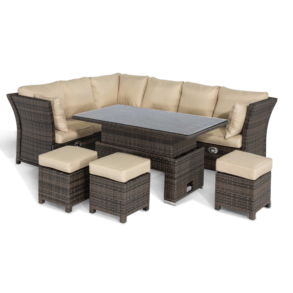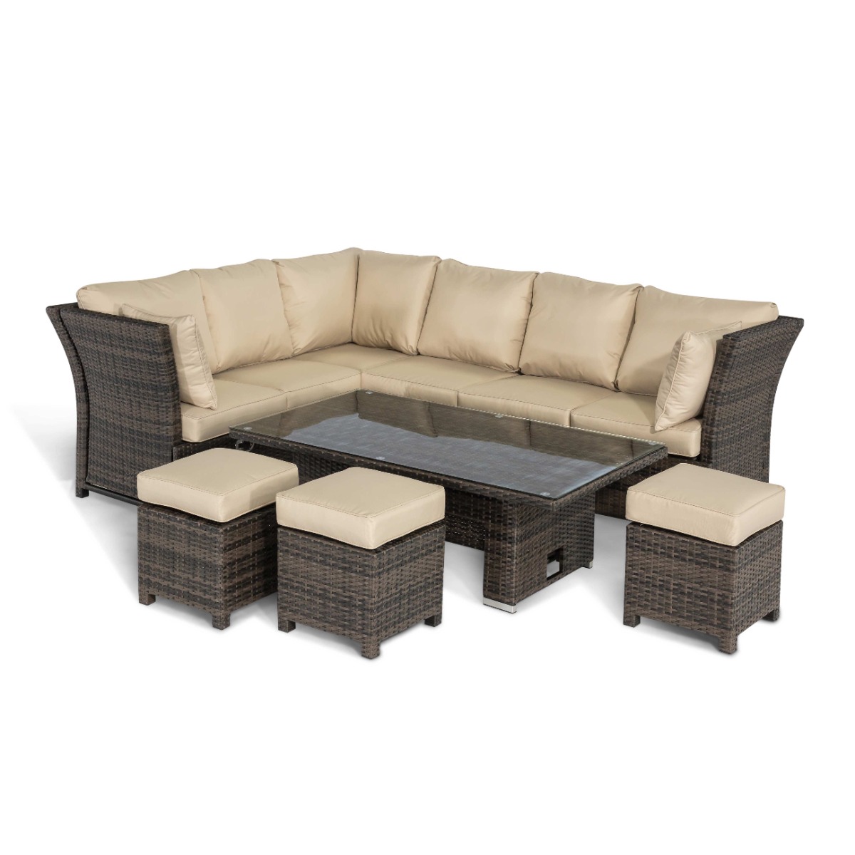 Henley Rattan Corner Dining Set with Rising Table – Brown