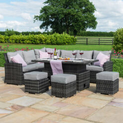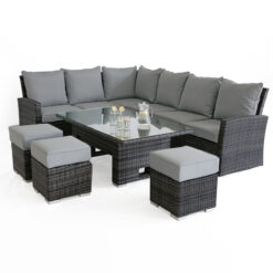 Kingston Corner Rattan Sofa Dining Set with Rising Table – Grey
