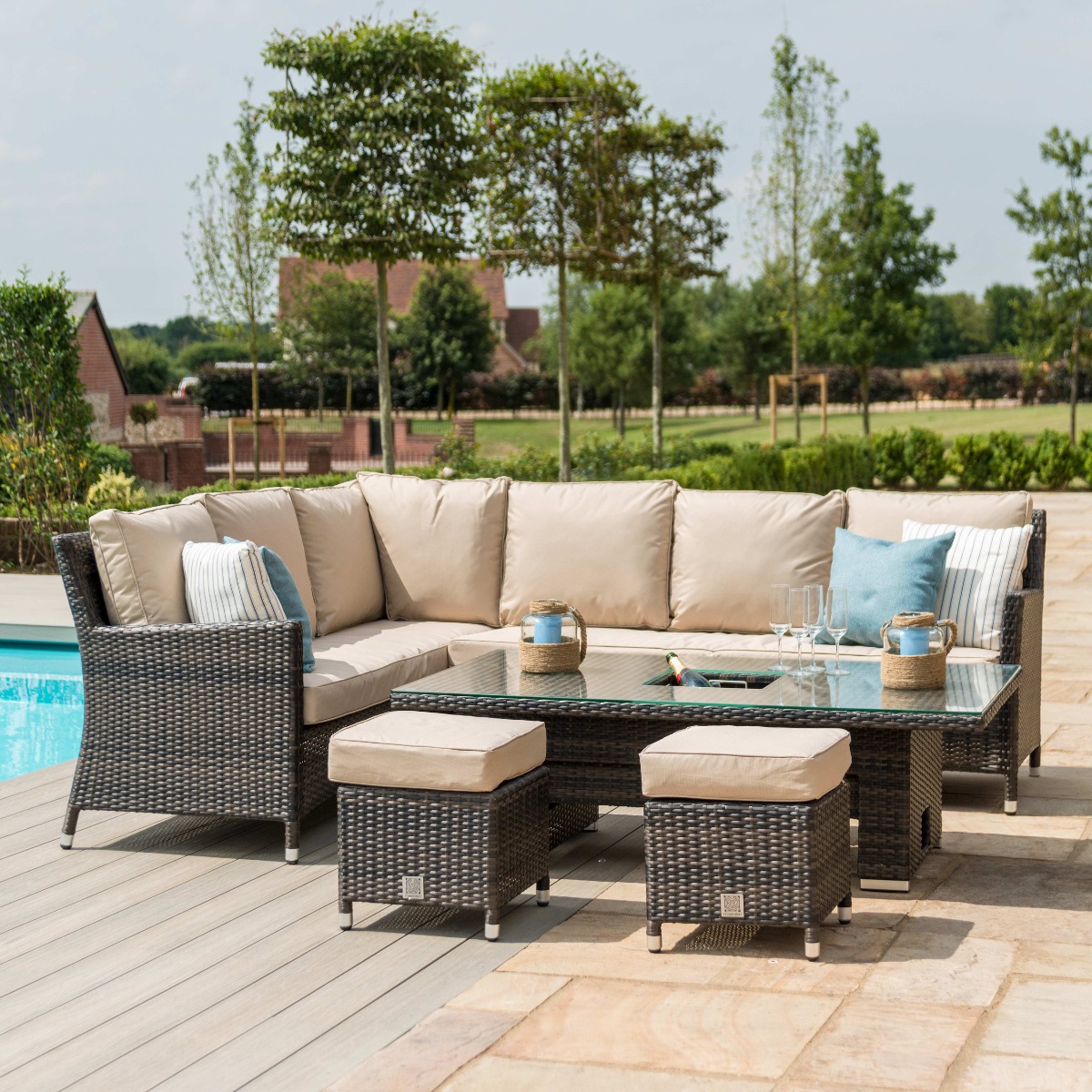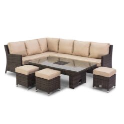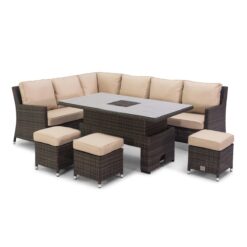 Venice Corner Rattan Sofa Dining Set with Ice Bucket & Rising Table – Brown